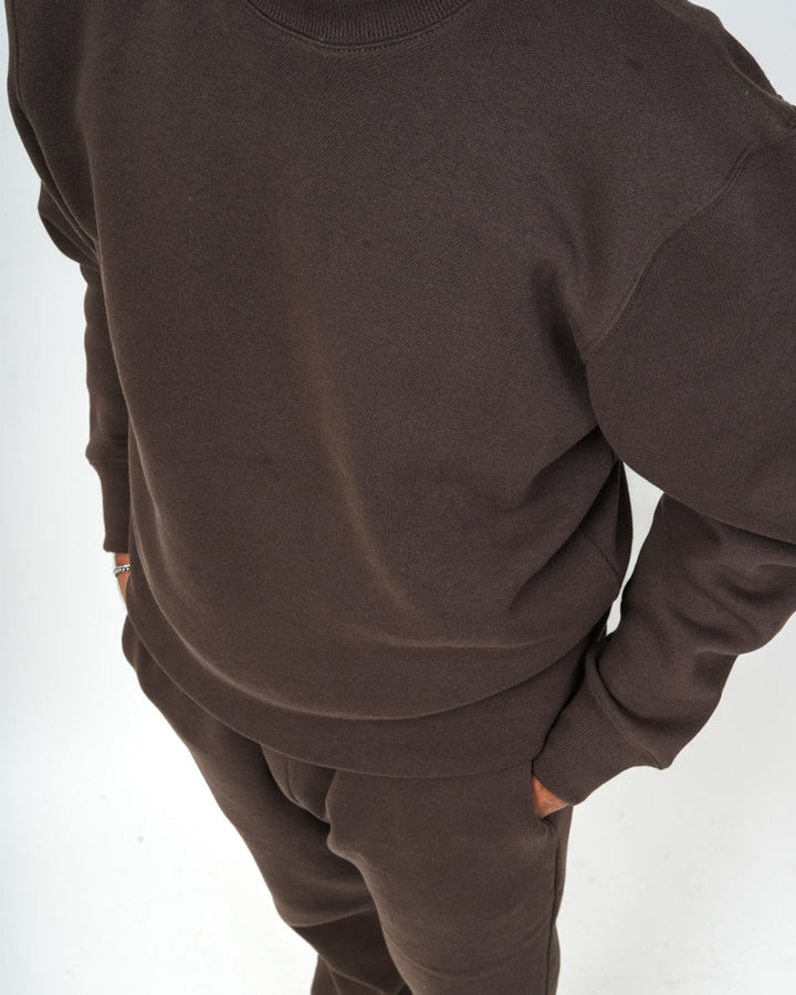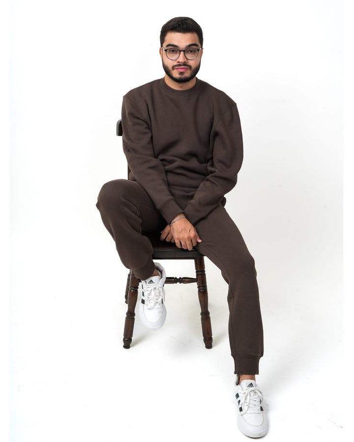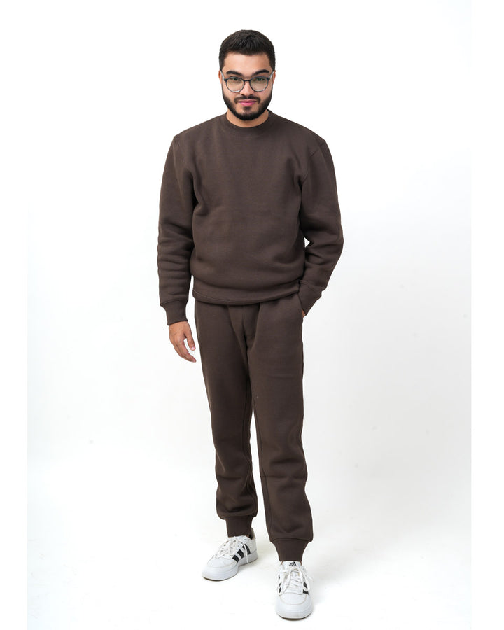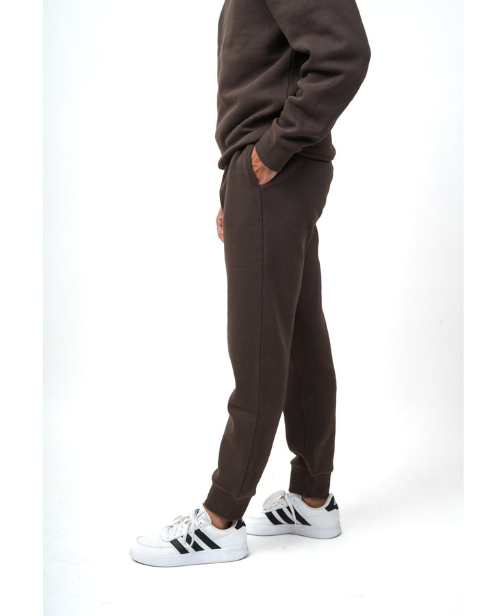 These deep chocolate-brown tapered trousers offer a snug yet polished lounge look — perfect for relaxing at home or heading out casually with effortless style.